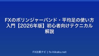 FX基礎知識FXテクニカル分析入門【2026年版】移動平均線・MACD・RSIの使い方をわかりやすく解説 FXのテクニカル分析を初心者向けに解説。移動平均線・MACD・RSI・ボリンジャーバンドの見方と使い方、エントリーポイントの見つけ方をわかりやすく紹介します。 2026.04.23FX基礎知識