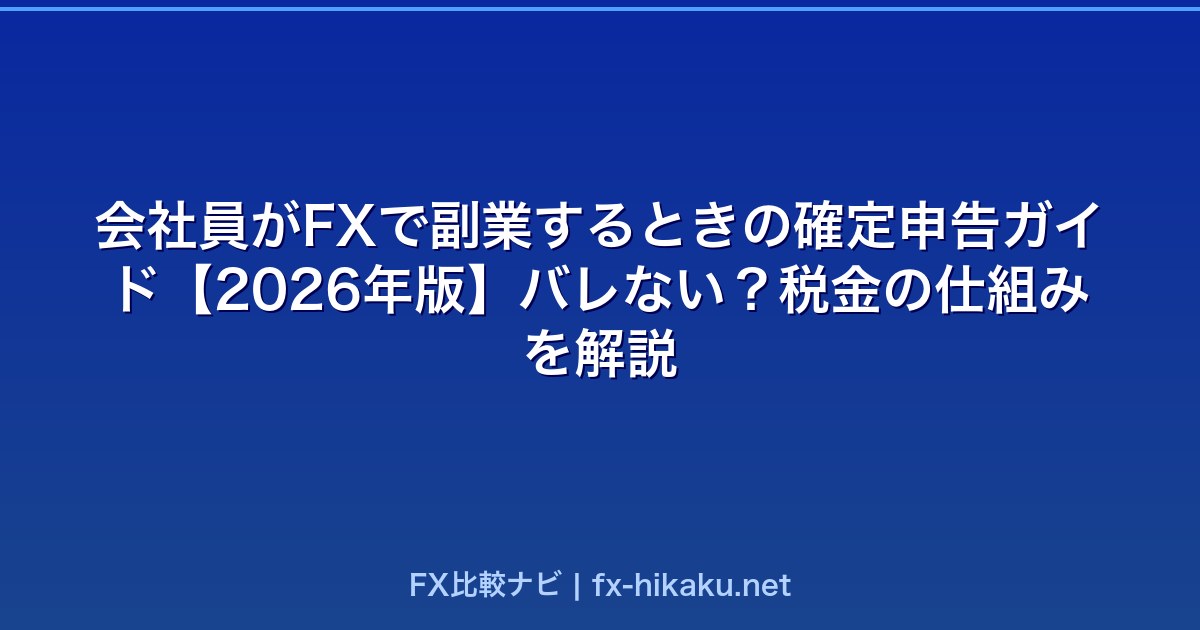 「会社員がFXで稼いだら確定申告が必要?」「会社にバレる?」という疑問を持つ方は多いと思います。FXの税金の仕組み・確定申告の方法・住民税の注意点をわかりやすく解説します。