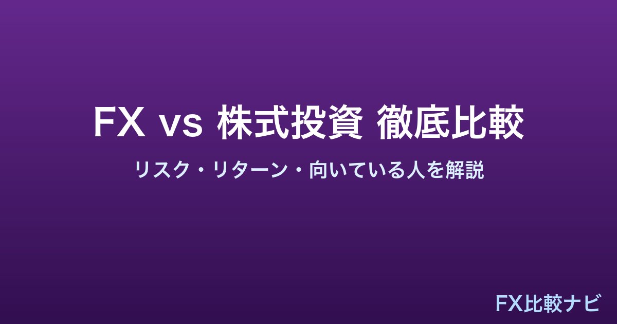 | 収益源 | 為替差益・スワップポイント | 売買差益・配当金・株主優待 |