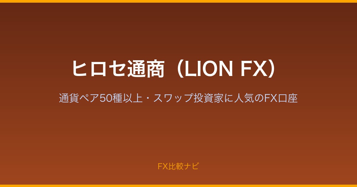 ヒロセ通商が提供するFXサービスのブランド名が「LION FX」です。同じ会社・同じサービスで、「ヒロセ通商FX」と「LION FX」は同一のものを指します。公式サイトでは「LION FX」というブランド名を使用しています。