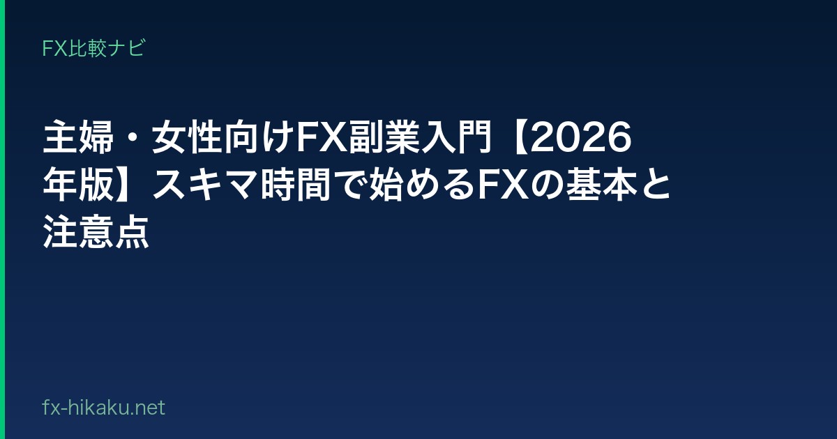 主婦・女性向けFX副業入門【2026年版】スキマ時間で始めるFXの基本と注意点